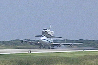 另據(jù)報(bào)道,一架改進(jìn)型波音747專用運(yùn)輸機(jī)19日背著“發(fā)現(xiàn)”號航天飛機(jī)從美國加利福尼亞州愛德華茲空軍基地起飛,原計(jì)劃20日回到肯尼迪航天中心。但因天氣原因,“發(fā)現(xiàn)”號不得不在途中暫時(shí)歇息,推遲一天回家。
