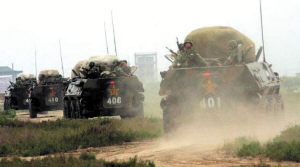 參加實(shí)兵演練的中方參演部隊(duì)從6月下旬開(kāi)始進(jìn)入演習(xí)場(chǎng)地。到7月中旬,中方參演的陸軍、海軍艦艇部隊(duì)和陸戰(zhàn)隊(duì)、空軍航空兵和空降兵全部集結(jié)完畢。各參演部隊(duì)進(jìn)駐演習(xí)地域后,自覺(jué)發(fā)揚(yáng)優(yōu)良傳統(tǒng),視人民如父母,把群眾當(dāng)親人,盡顯威武文明之師形象。