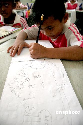泰南海嘯災區(qū)的孩子在描繪未來。