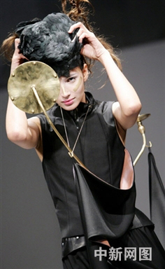 2006年2月20日,米蘭時裝周,一名模特正在展示日本設(shè)計師Kei Kagami的2006/2007秋冬女裝作品。