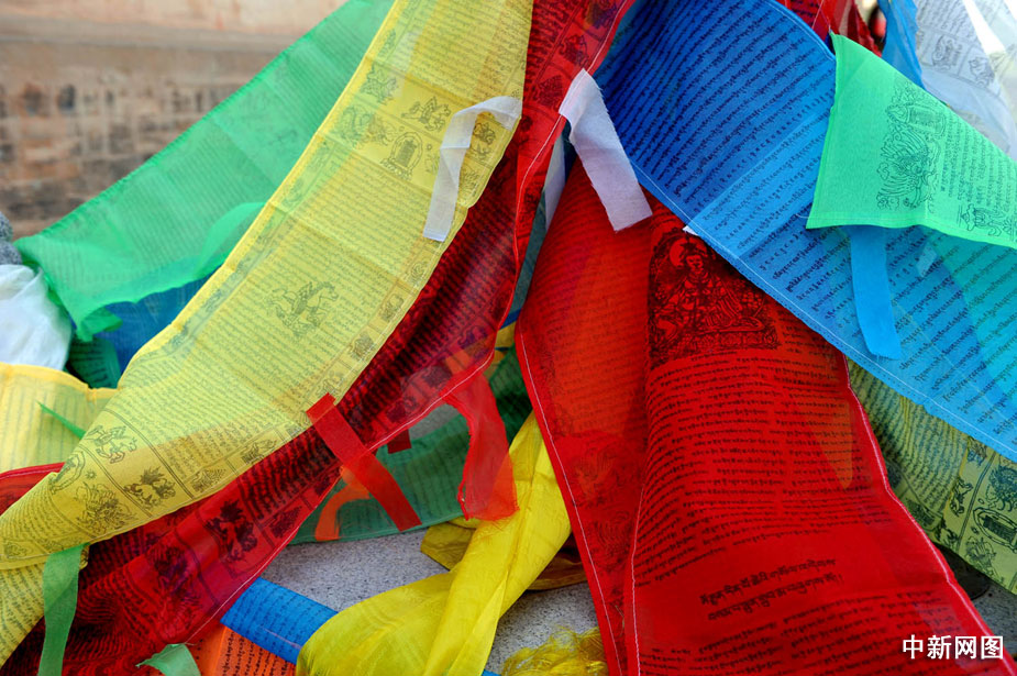圖為寫(xiě)滿經(jīng)文的彩帶。中新網(wǎng)記者 金碩 攝
