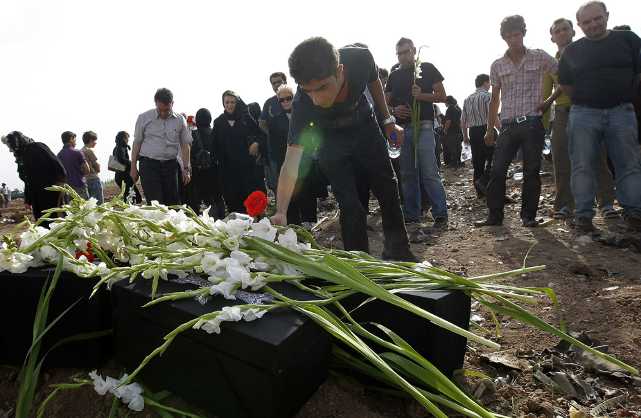 7月16日,部分遇難者的親屬在伊朗加茲溫附近的墜機現(xiàn)場悼念親人。一架伊朗客機15日在加茲溫附近墜毀,機上168人全部遇難。更多報道
