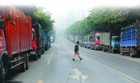 昨日,南岸白鶴路,貨運(yùn)市場外的道路兩旁停滿了受柴油拖累無法上路行駛的大貨車。本組圖片由首席記者 鐘志兵 攝財(cái)經(jīng)調(diào)查