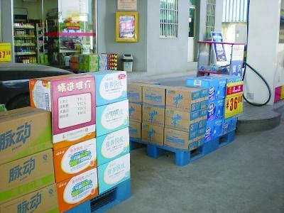 加油站里擺滿(mǎn)出售的商品。