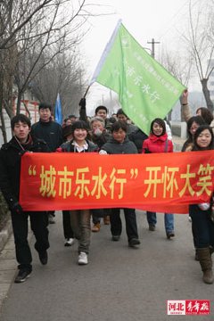 專程從北京趕來參加此次“城市樂水行”活動的張峻峰介紹說,目前全國已經(jīng)有十多個城市開展了這一新潮的健身活動。今年3月份,他們還將計劃由京津冀的志愿者共同結(jié)伴,沿著三地的南水北調(diào)徒步行走,在考察水環(huán)境的同時,健身、健心、健智,達到人與自然和諧。