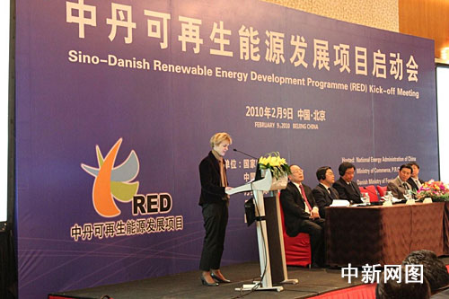 丹麥氣候變化與能源部長2月9日在中丹可再生能源發(fā)展合作項(xiàng)目的啟動(dòng)儀式上發(fā)言。