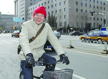 看記者正在拍照,讓他配合一下,他咧嘴笑了,然后騎上車離開了。離開前,記者說,您出行很環(huán)保!他開玩笑說,就算低碳一次吧。(記者 郭靜)