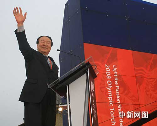 北京奧組委執(zhí)行副主席蔣效愚致辭并向觀眾揮手