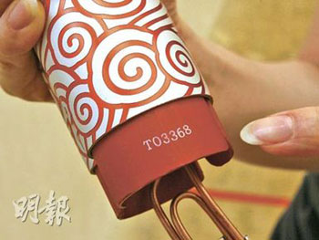 麥佩軒日前在朋友協(xié)助下拆開火炬,取走內(nèi)里的燃料,發(fā)現(xiàn)該火炬刻有編號“3368”,她說:“這是不少人心中的幸運號碼,希望可借此再推高成交價。”