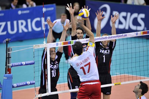 中新網(wǎng)5月27日電 25日,北京2008年奧運(yùn)會男排落選賽德國站在杜塞爾多夫進(jìn)行了最后1輪比賽的爭奪,東道主德國隊(duì)苦戰(zhàn)五局,以3-2戰(zhàn)勝西班牙隊(duì),以3戰(zhàn)全勝的戰(zhàn)績獲得該站比賽的冠軍,也同時(shí)獲得了北京奧運(yùn)會的參賽資格。