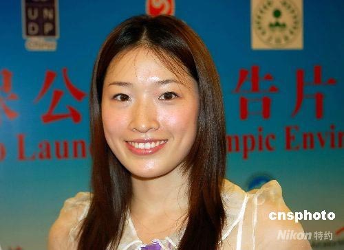 圖為奧運(yùn)會(huì)游泳冠軍羅雪娟出席“奧運(yùn)環(huán)保公益廣告片”在北京舉行的首映式。中新社發(fā) 潘旭臨 攝