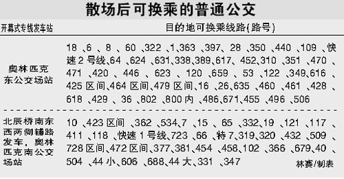 據(jù)介紹,開幕式當(dāng)天,從北京南站、動物園、四惠等地發(fā)車,開通28條奧運會開幕式公交臨時專線,一站直達奧林匹克公園東、南公交場站,中途不設(shè)站。