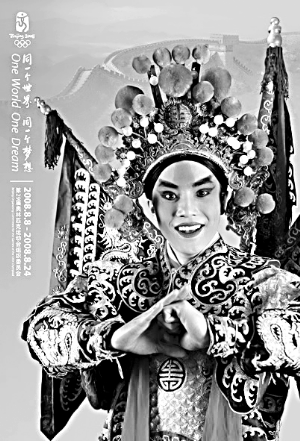 “演員擺的姿勢(shì)都是表演時(shí)的動(dòng)作!甭芬愀嬖V記者,拍攝過(guò)程中,演員根據(jù)京劇的表演方式在鏡頭前不斷的做動(dòng)作,包含舉手的、抱拳的不同角度的姿勢(shì),當(dāng)時(shí)花了三四個(gè)小時(shí),抓拍了上千張圖片。最后,奧組委挑中了這張圖片。