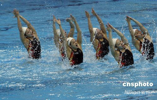 8月6日,日本花樣游泳隊在北京“水立方”適應(yīng)賽場。作為花樣游泳老牌勁旅,日本隊在悉尼、雅典兩屆奧運會上收獲了4枚銀牌,她們一直希望能品嘗到金牌的滋味。中新社發(fā) 杜洋 攝