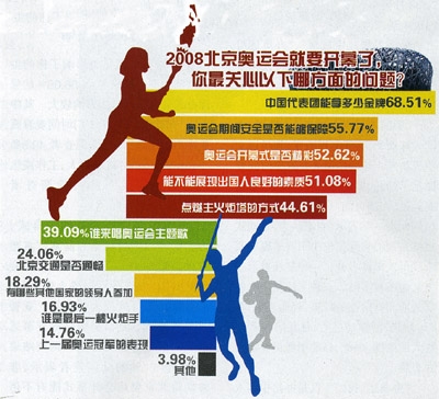 奧運(yùn)會(huì)開幕在即,公眾最關(guān)心、最擔(dān)心、最期待什么?最愛看的比賽項(xiàng)目是什么?中國人將以怎樣的方式和心態(tài)關(guān)注奧運(yùn)賽事?圍繞這些問題,2008年7月,人民論壇雜志社聯(lián)合新浪網(wǎng)以“北京奧運(yùn),公眾關(guān)注什么”為題進(jìn)行了網(wǎng)絡(luò)調(diào)查。該調(diào)查一推出,即受到網(wǎng)友廣泛關(guān)注,并轉(zhuǎn)貼到其他網(wǎng)站調(diào)查區(qū)、討論區(qū)等。初步統(tǒng)計(jì)了受調(diào)查人數(shù)4500人。此外,人民論壇記者隨機(jī)采訪調(diào)查了部分北京市民。