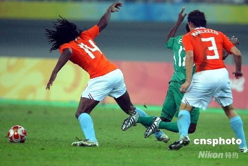 圖:奧運(yùn)男足荷蘭14號(hào)隊(duì)員被紅牌罰下場(chǎng)(2)