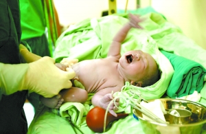 中山大學(xué)附屬第一醫(yī)院產(chǎn)科平均每天降生10個寶寶,而預(yù)訂在8日通過剖腹產(chǎn)出生的目前已有兩三個!翱傮w比較正常,沒有明顯追逐‘奧運(yùn)寶寶’,很多父母還是按部就班,尤其是年輕健康、能自然生產(chǎn)的媽媽們,依然堅持‘瓜熟蒂落’! 中山大學(xué)附屬第一醫(yī)院工作人員告訴記者。