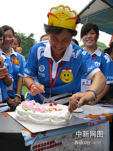 圖:奧運志愿者開幕式當(dāng)天迎來五十歲生日