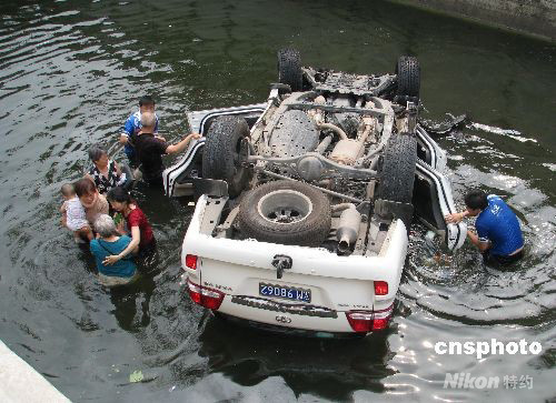 圖:汽車落水 北京奧運(yùn)志愿者奮勇相救