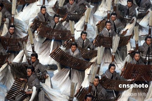 圖:文藝演出孔子弟子手執(zhí)竹簡(jiǎn)漫漫歌頌
