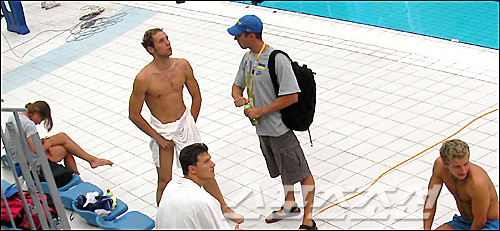 報(bào)道說(shuō),水立方的一邊是跳水場(chǎng)館,一邊是游泳場(chǎng)館,選手們的更衣室設(shè)在場(chǎng)館外面的走廊。外國(guó)選手尤其是歐美男子選手們經(jīng)常在賽場(chǎng)內(nèi)換泳褲,而且還毫不顧忌地和女隊(duì)友們邊聊邊換。當(dāng)然基本程序是,用浴巾遮住主要部位,然后脫掉泳褲,再換上運(yùn)動(dòng)服。但是,由于這套“業(yè)務(wù)”進(jìn)行得不是很精細(xì),只能大概換一下衣服,所以偶爾會(huì)出現(xiàn)有尷尬場(chǎng)面,就是主要部位經(jīng)常會(huì)走光。