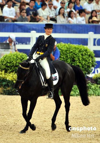 八月十日,北京奧運馬術三項賽個人賽之盛裝舞步環(huán)節(jié)的賽事在香港沙田奧馬賽場結束。澳大利亞馬術隊在這一環(huán)節(jié)積分暫時領先。中新社發(fā) 鄧慶樂 攝