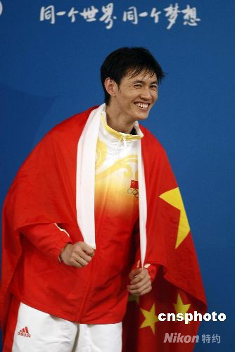 8月12日晚,08北京奧運(yùn)會(huì)男子佩劍個(gè)人賽決賽在北京國(guó)際會(huì)議中心擊劍館揭開(kāi)戰(zhàn)幕,賽會(huì)黑馬14號(hào)種子中國(guó)選手仲滿和法國(guó)選手洛佩茲在決賽中遭遇,結(jié)果中國(guó)選手仲滿以15-9戰(zhàn)勝對(duì)手獲得冠軍,這是中國(guó)男子擊劍在奧運(yùn)會(huì)上第一次獲得冠軍。中新社發(fā) 盛佳鵬 攝