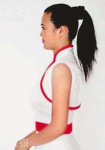 這款比較突出大的包發(fā),突出飽滿的熱情。此外,發(fā)型的線條動(dòng)感十足,和旗袍的風(fēng)格也比較一致。另外,發(fā)型師特別搭配了奧運(yùn)五環(huán)的小配飾,使發(fā)型脫離了單調(diào)的感覺(jué),又體現(xiàn)了奧運(yùn)元素。這個(gè)小飾品別在頭的側(cè)面,頒獎(jiǎng)時(shí)觀眾很容易看到。
