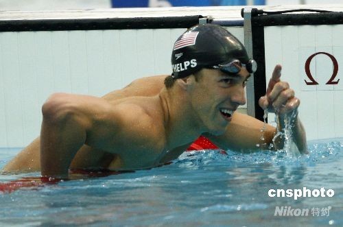 8月16日,北京奧運會男子100米蝶泳決賽中,美國選手菲爾普斯以50秒58摘取其第七枚金牌,距離自己的奧運會八金夢想僅有一“金”之遙。 中新社發(fā) 杜洋 攝