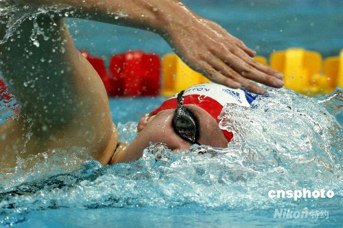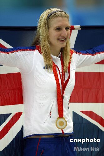 8月16日,在北京奧運會女子800米自由泳決賽中,英國名將阿德林頓以8分14秒10奪取冠軍,打破由前美國名將埃文斯保持的塵封19年的世界紀(jì)錄。意大利選手菲利皮8分20秒23獲得銀牌,丹麥選手弗里斯以8分23秒03列第三。中國選手李玄旭8分26秒34排名第五。 中新社發(fā) 杜洋 攝
