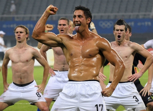 新西蘭國(guó)奧諸將在場(chǎng)邊跳起傳統(tǒng)的土著舞蹈——毛利舞,小伙子健美的身材令全場(chǎng)觀眾尖叫。