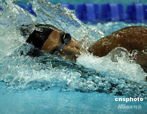 8月17日,北京奧運(yùn)會(huì)男子1500米自由泳決賽中,來(lái)自突尼斯的邁盧利擊敗澳大利亞名將哈克特,以14分40秒84獲得金牌。 這是突尼斯從1960年第一次參加奧運(yùn)會(huì)以來(lái)獲得的第一枚奧運(yùn)會(huì)游泳金牌。 中新社發(fā) 杜洋 攝