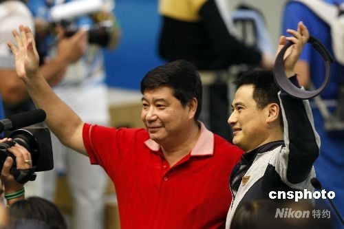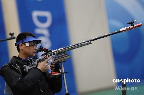 8月17日,男子50米步槍三種姿勢(shì)決賽在北京射擊館進(jìn)行,中國選手邱健奪得金牌。8月17日,13:52分,男子步槍三姿第10輪邱健驚天逆轉(zhuǎn)得金牌。本來以為得到銀牌已經(jīng)是最好的結(jié)果,一直領(lǐng)先的美國選手埃蒙斯雖沒有像上一屆奧運(yùn)會(huì)一樣脫靶,但是他最后一槍居然只打出了4.4環(huán),埃蒙斯又一次把冠軍送給了中國選手。中新社發(fā) 盛佳鵬 攝