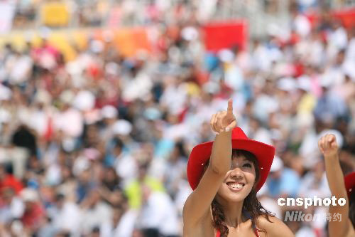 圖為沙灘排球?qū)氊惉F(xiàn)場(chǎng)為選手助威。 中新社發(fā) 武仲林 攝