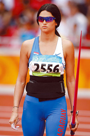 今年26歲的樂琳是巴拉圭國(guó)內(nèi)家喻戶曉的人物。容貌姣好的她選擇了標(biāo)槍這一男性化運(yùn)動(dòng)。在選擇之初,她的家人和朋友就不能理解:如果喜歡體育,為什么不去練健美操這樣優(yōu)雅的運(yùn)動(dòng)呢?頂著巨大的壓力,樂琳還是堅(jiān)持了下來,甚至連她也不清楚自己為什么喜歡上了標(biāo)槍:“我覺得練標(biāo)槍很有力量,我喜歡擲出時(shí)的動(dòng)作。”