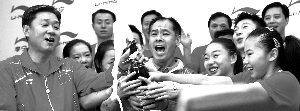 “還有很多不確定的因素,比如新規(guī)則今后肯定還會(huì)有變化,這個(gè)團(tuán)隊(duì)是不是還需要我,這些都很難說(shuō),所以我現(xiàn)在不會(huì)亂下決定!苯邮懿稍L的過(guò)程中,眼淚已在這名老將眼眶中打轉(zhuǎn),而她與身邊幾名有說(shuō)有笑的“小師妹們”,形成了鮮明對(duì)比。也許是感覺(jué)自己的心境與歡慶的氣氛不融洽,程菲獨(dú)自一人坐到了角落里,雙手掩面,并不斷擦拭淚水,任憑女隊(duì)教練如何安慰,低頭不語(yǔ)的程菲沉寂到自己的悲傷世界里。