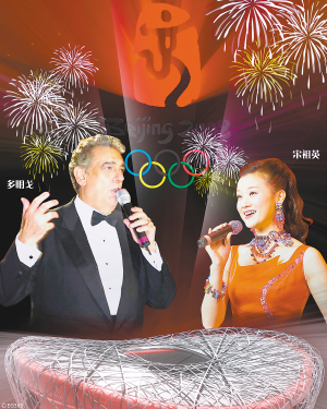 例如,宋祖英與世界著名男高音多明戈的合唱就是中西合璧的一個組合。另外,與開幕式上劉歡、莎拉·布萊曼兩人站在“藍(lán)色星球”上靜靜地演唱氛圍不同,宋祖英和多明戈演唱時將會有非常炫彩的伴舞,初定的伴舞風(fēng)格是云南舞。此外,還會有很多與高科技相結(jié)合的嶄新音樂形式也將給觀眾帶來視聽享受。