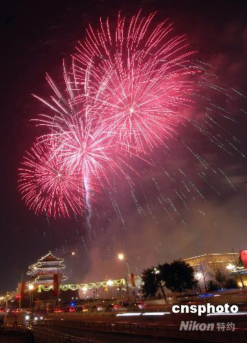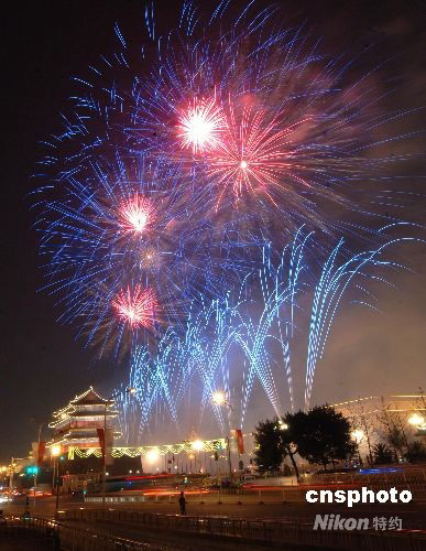 圖:北京燃放焰火慶奧運(yùn)會圓滿閉幕