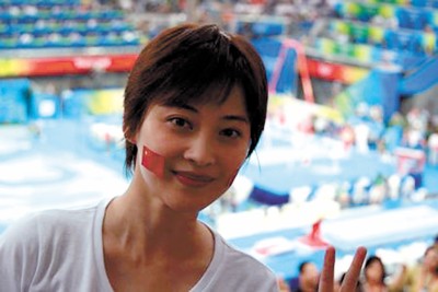 在北大體育館觀看中國女子乒乓團體決賽的袁立,見證了中國奪取奧運會歷史上首枚乒乓團體金牌,不忘擺個POSE表示一下喜悅心情。