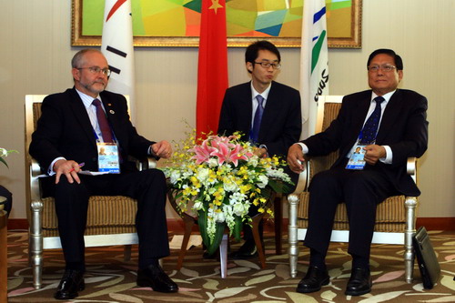 全國(guó)政協(xié)副主席、北京奧組委執(zhí)行主席鄧樸方,北京市委副書記、市長(zhǎng)、北京奧組委執(zhí)行主席郭金龍,中殘聯(lián)副主席、北京奧組委執(zhí)行副主席湯小泉,北京市政協(xié)副主席趙文芝、北京奧組委執(zhí)行副主席兼秘書長(zhǎng)王偉會(huì)見時(shí)在座。