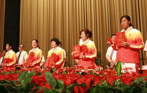 中新網9月4日電 據香港《大公報》報道,山東省昨天舉行隆重的表彰大會,王峰、劉春紅、杜麗、張娟娟、奚愛華5名奧運冠軍與參加北京奧運會的其它運動員和教練員受到表彰。