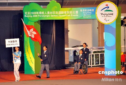 九月六日,北京二零零八年殘奧會馬術比賽開幕式在香港舉行歡迎晚會,香港殘奧馬術選手葉少康在運動員入場式上進場。中新社發(fā) 鄧慶樂 攝