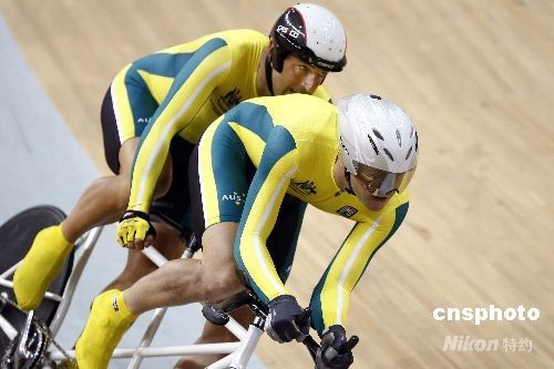 9月7日,北京殘奧會(huì)場地自行車項(xiàng)目的角逐在北京老山自行車館正式拉開帷幕。在男子個(gè)人追逐賽(B&VI)資格賽中,澳大利亞選手基蘭·莫德拉(左)與領(lǐng)騎員泰森·勞倫斯以4分18秒961的成績順利進(jìn)入決賽,并打破了4分20秒891的原世界紀(jì)錄。中新社發(fā) 盛佳鵬 攝
