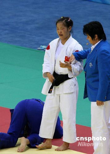 9月7日,在工人體育館舉行的殘奧會盲人柔道女子48公斤級比賽中,中國選手郭華平以絕對優(yōu)勢戰(zhàn)勝了巴西選手卡拉·卡多佐,奪得金牌。中新社發(fā) 王韶驊 攝