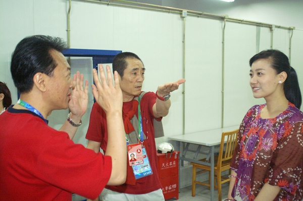 張藝謀總導(dǎo)演和張繼剛導(dǎo)演到后臺看譚晶