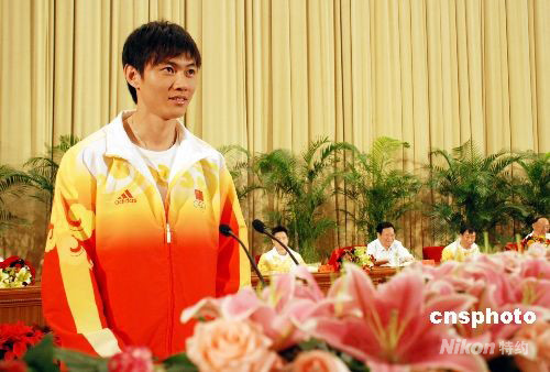 奧運會男子佩劍個人冠軍仲滿在報告會上發(fā)言