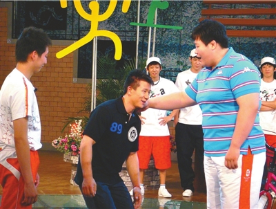 近日,在央視和中國(guó)文體明星助威團(tuán)《國(guó)慶七天樂(lè),參與奧運(yùn)更快樂(lè)》拍攝現(xiàn)場(chǎng),奧運(yùn)會(huì)女子78公斤級(jí)柔道冠軍佟文騎著自行車來(lái)到了“奧林匹克花園社區(qū)”,剛從車上下來(lái)就看到同是奧運(yùn)會(huì)體操吊環(huán)冠軍的“老鄉(xiāng)”陳一冰隨便把垃圾一扔,看在眼里的佟文很是不滿,“怎么亂扔垃圾!”佟文說(shuō)著一個(gè)大巴掌把陳一冰給拍趴下了!還是主持人畢福劍考慮周到,把兩人叫到一邊說(shuō)道:“咱們國(guó)慶要七天樂(lè)!”(李昊)