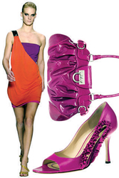 回顧上世紀(jì)80年代的時尚潮流,自由、開放、眼花繚亂、略帶點(diǎn)頹廢,最明顯的標(biāo)志莫過于色彩的沖撞。那個年代幾乎將所有的色彩都聚在了一起,對比色、跳躍色、熒光色等。總之,那些純度偏高的色彩總是能給人帶來視覺刺激的愉悅和個人感情釋放的快感。于是,有了Isabella Fiore的“Love”綠色挎包;L.A.M.B的橙色和綠色拼合運(yùn)動茄克;Marc Jacob的黃色露趾平底鞋;Nike的多色相拼運(yùn)動連衣裙;Sonia Rykiel的黑白對比色視幻大手鐲……