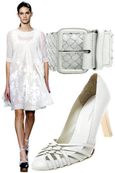 無可爭議,白色是今夏流行主打色,白色的純凈最適合夏季,而設(shè)計(jì)師在白色的細(xì)節(jié)修飾上也做足了文章。為了能讓單一的色彩更凸顯立體感,白色的腰帶和鞋面都做成了編織肌理;白色的襯衫上也裝飾了細(xì)巧的木耳邊和別致的扣子;白色連衣裙上安排了花朵立體刺繡。總之,白色不僅僅是單純的白色了,多種細(xì)節(jié)裝飾手法的混合運(yùn)用,讓白色的內(nèi)涵變得更為豐富。 (來源:新民晚報;作者:梅怡)