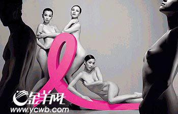 2005年10月,兩岸三地鐘麗緹、鄔君梅、李冰冰3位女星全裸出鏡,代言2005年度粉紅絲帶運(yùn)動(dòng),號(hào)召公眾“愛(ài)乳房,愛(ài)自己”。